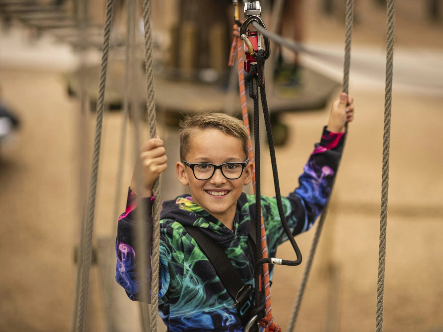 Leap, bounce and laugh your way across giant suspended nets high in the forest canopy. Great for energetic kids and grown-ups alike — no harnesses, just pure fun.